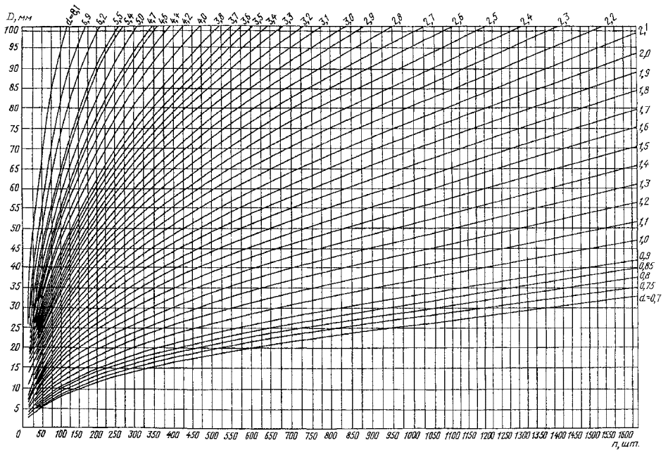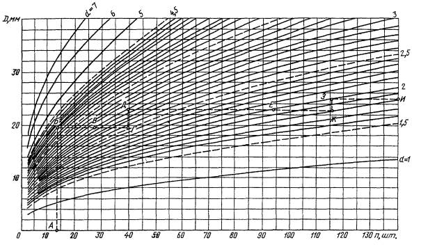 параллельную оси ординат, до пересечения с кривой d = 3 мм (точка Д). Через точку Д следует