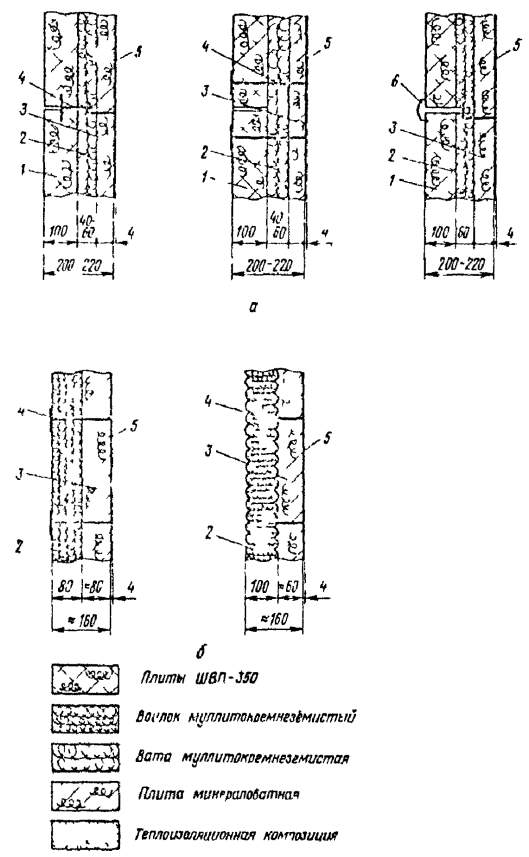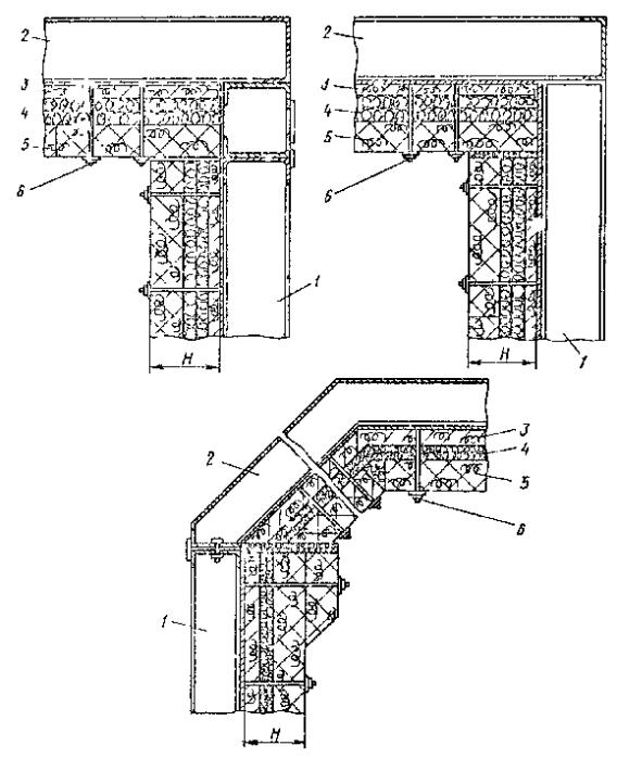 - огнеупорный войлок; 4 - штырь; 5 - плита ШВП-350; 6 - анкер скрытого типа Рис. 18. Конструкция узлов сопряжении