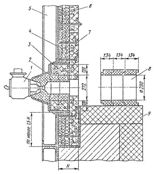 кожухом печи. Конструкции стыков сборных панелей, оформление отверстий для