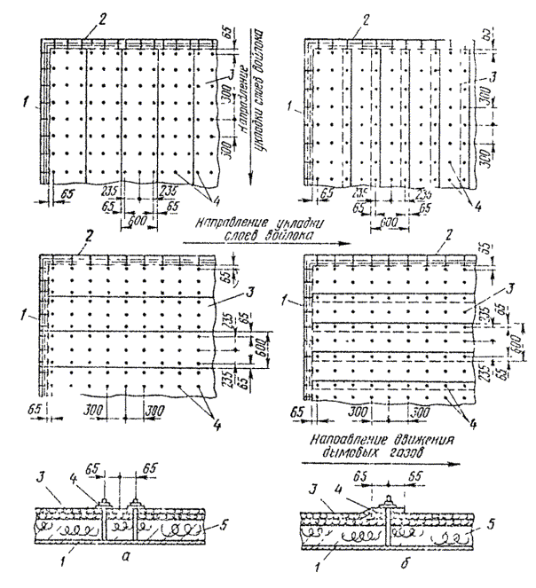 на основе огнеупорных волокнистых материалов и способы их укладки должны