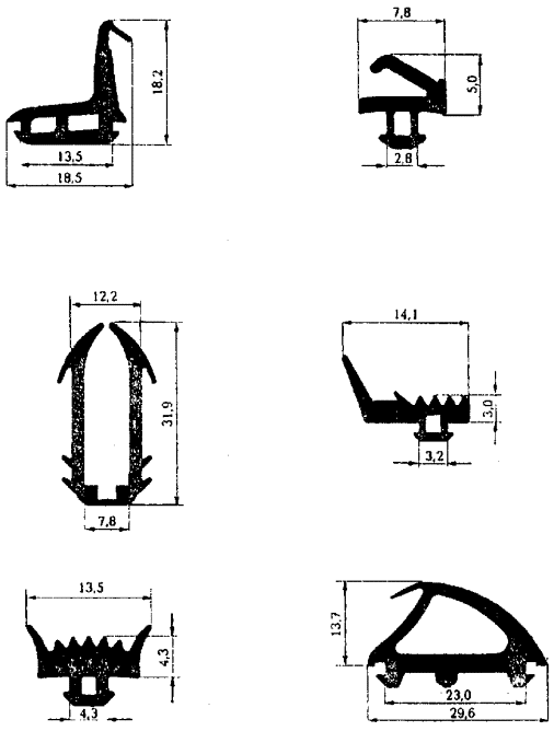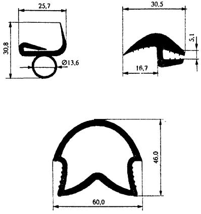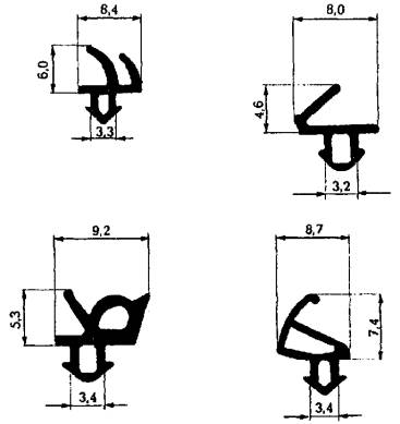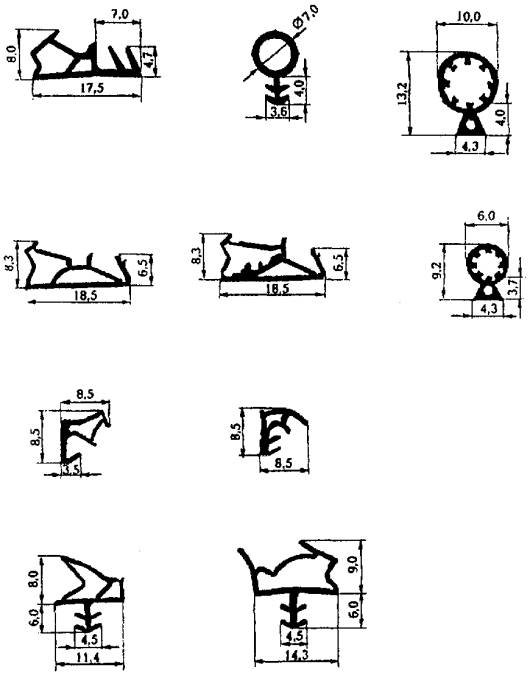 размерам, указанным в рабочих чертежах. Примеры сечений уплотнителей различного
