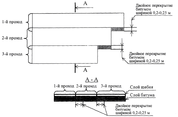 обработки техникой с синхронным распределением битума и щебня, определяют