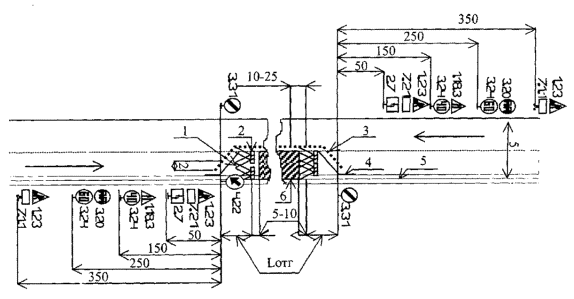 2 - ограждающие барьеры; 3 - направляющие конусы;