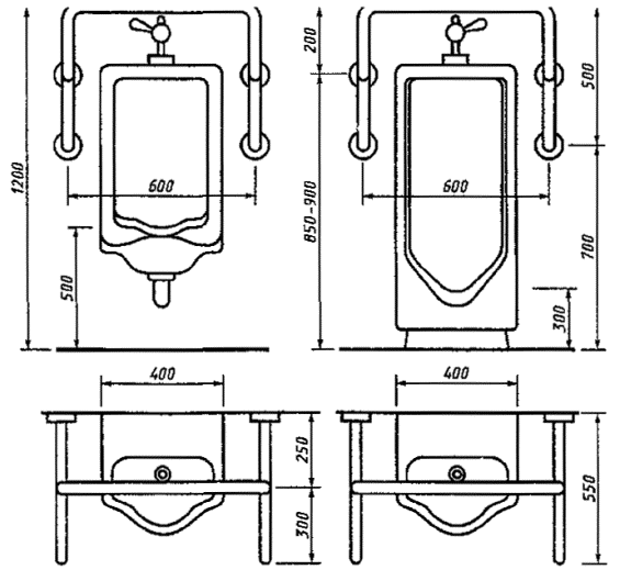 удобства при пользовании настенным писсуаром в общественных туалетах, доступных