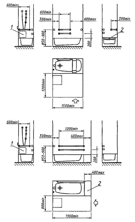 комбинированные горизонтальные поручни (рисунок Г.8). 5.4.10 В туалетных, ванных