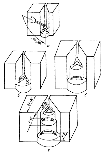 мм электрод перемещают по краю ванны с задержкой в мостах, указанных на рис. 13, б.