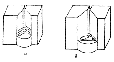 проход, электрод перемещать либо перпендикулярно плоскости стыка, либо углом