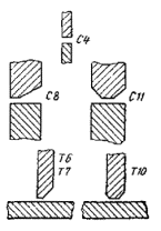 многослойных горизонтальных соединений конструкций толщиной, мм: а - 6-8, б - 10-12;