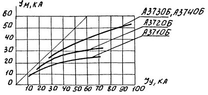 выключателей серии ВА53 приведена на рис. 1.1, 1.2, 1.3 и 1.4. Рис. 1.1. Напряжение 660 В, Cos f = 0,3, 1600 А Рис. 1.2. Напряжение 380 В, Cos f = 0,2, 1600 А Рис. 1.3. Напряжение 660 В, Cos f = 0,3, ток 1000 А Рис. 1.4. Напряжение 380 В. Cos f = 0,2, 1000 А Iм.откл. - максимально возможный ток КЗ при