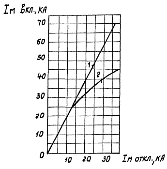 отключении - наибольший ток КЗ, пропускаемый выключателем (ограниченный); Iм.вкл. - ожидаемый ток КЗ (ударный ток КЗ) 1 - без ограничения тока; 2 - с ограничением тока. Приложение к разделу 5Заготовка для карты селективности