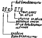 В - взрывонепроницаемая оболочка П - продувка под избыточным давлением И - искробезопасная электрическая цепь К - кварцевое заполнение М - масляное заполнение С - специальный вид взрывозащиты Н - защита вида “е” А - автоматическое отключение от