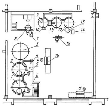 насосы 36-3Ц-3,5-10; 5 - насос П8-ОНБ; 6 и 14 - насосы