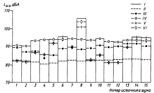 но с оптимизацией рассчитанных значений звуковой мощности; VI -