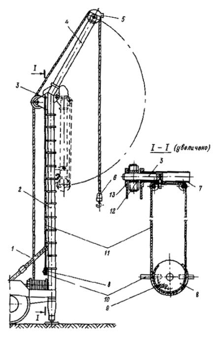 и состоит из шарнирно скрепленных между собой стойки и стрелы. Мачту