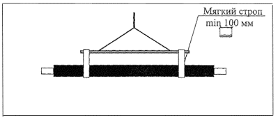 стадии разработки. 3. Транспортировка и разгрузка готовой продукции3.1. Транспортировка теплоизолированных труб должна производиться автотранспортом с удлиненным прицепом, приспособленным для перевозки труб. · Свободные концы труб не должны выступать за габариты транспортного средства более, чем на 1 м. · В транспорте должно быть предусмотрено приспособление, предотвращающее скатывание и перемещение продукции в кузове при транспортировке. Рекомендуется использовать изделия из бруса сечением 100 ´ 100 мм. · Количество ярусов не должно превышать высоты, указанной ниже в п. 6. Перевозка продукции на неприспособленном автотранспорте может привести к повреждению теплоизоляции! В случаях несоответствия автотранспорта в накладной делаются отметки, и претензии к повреждению теплоизоляции не принимаются. 3.2. При погрузке и разгрузке теплоизолированных труб и элементов должны быть приняты особые меры, обеспечивающие сохранность защитных оболочек и теплоизоляционного слоя из пенополиуретана. Разгрузку теплоизолированных труб и других элементов на строительной площадке следует проводить механическим способом с применением грузоподъемных механизмов и мягких полотенец. Скатывание и сбрасывание труб и элементов с транспортных средств не допускается! 3.3. Разгрузку изолированных труб и элементов трубопроводов диаметром до 150 мм следует производить с использованием траверс и мягких полотенец или строп, располагаемых на трубах на одну треть по их длине. Трубы диаметром 300 - 1000 мм разгружают с использованием полотенец или строп с захватом по неизолированным концам стальных труб. Отводы, тройники, неподвижные опоры и т.п. разгружают с помощью строп, протягиваемых внутри фасонных элементов. При использовании эластичных или стальных строп их длина должна быть подобрана таким образом, чтобы угол между ними в месте присоединения к крюку был не менее 90 градусов.