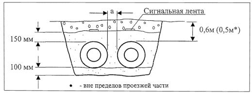 drawing 2 drawing 3 drawing 4 4.3. Изолированные трубы и фасонные изделия при хранении более 2-х недель должны быть защищены от воздействия прямых солнечных лучей (в тени, под навесом или прикрыты рулонным материалом). 4.4. Не допускается складирование и хранение продукции МосФлоулайн в местах, подверженных затоплению водой. 4.5. Полуцилиндры, термоусаживающиеся полиэтиленовые манжеты и муфты должны располагаться в помещениях или под навесом в заводской упаковке. 4.6. Компоненты "А" и "Б" пенополиуретана должны храниться в теплом отапливаемом помещении. Срок хранения для компонентов "SHELL" и "BASF" не более 6 месяцев, "BAYER" - не более 3 месяцев. 5. Земляные работы5.1. Наименьшую ширину траншей по дну при двухтрубной бесканальной прокладке тепловых сетей следует принимать для труб: диаметром до 250 мм - 2d1+a+0,6 м; до 500 мм - 2d1+a+0,8 м; до 1000 мм - 2d1+a+l,0 м, (где d1 - наружный диаметр оболочки теплоизоляции, м; а - расстояние в свету между оболочками теплоизоляции труб, м).