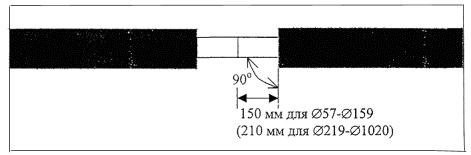 6.14. Угловое отклонение по металлу на углах поворота П-образных компенсаторов и отводов допускается не более 0,25 °. Угловое отклонение по металлу на прямых участках допускается в пределах 2,5°, что лежит в пределах допустимого для изоляции стыков типа "МосФлоулайн-1000". В случае, если угловое отклонение по металлу превышает 2,5° оно должно быть согласовано с эксплуатирующей и проектной организациями. 6.15. Монтаж трубопроводов в полиэтиленовой оболочке с теплоизоляцией из ППУ производится при температуре наружного воздуха не ниже минус 15°С. При работе с трубами в пределах температур от минус 5°С до минус 15°С резка оболочки должна производиться с предварительным подогревом газовой горелкой. Следует тщательно удалить скребком все остатки пеноматериала, которые могут при горении выделять экологически небезопасные вещества. При производстве сварочных работ необходимо установить защиту пенополиуретана и полиэтиленовой оболочки, а также концов проводов, выходящих из изоляции, от попадания на них искр (защитные экраны).