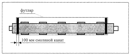 6.18. После сварки концов стальных труб произвести очистку наружной поверхности участка стыка от следов ржавчины с помощью металлических щеток. 6.19. Монтаж трубопроводов производится, как правило, на дне траншеи. Допускается производить сварку прямых участков труб в секции на бровке траншеи при температуре +10°С и выше. Несколько труб свариваются в плеть и изолируются на лежнях (с последующим их удалением), располагаемых поперек траншеи на дне с соответствующими промежутками. Лежни следует изготавливать только из деревянного бруса. 6.20. На углах трубопроводов, углах П-образных компенсаторов и прямых участках (в случае отсутствия терминалов) через 300 м устанавливают сигнальные столбики. 6.21 В случае прокладки трубопроводов в футлярах использовать трубы только с усиленной оболочкой.