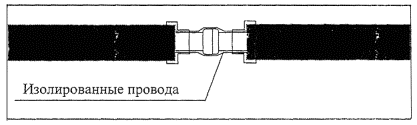7.4.5. Соединить провода согласно Разделу 7.3 "Соединение проводников системы ОДК" настоящего Руководства. 7.4.6. Выполнить изоляцию стыка. 7.4.7. По окончании работ проверить сопротивление изоляции и сопротивление петель проводов системы ОДК смонтированных участков. 7.5. Установка кабеля вывода из-под заглушки изоляции С целью предотвращения разукомплектации кабеля ЗАО "Мосфлоулайн" поставляет заказчику элемент трубопровода с заглушкой изоляции с кабелем длиной 150 - 200 мм. Вывод кабеля из-под заглушки изоляции для создания измерительных пунктов и осуществления необходимой коммутации проводов производится в соответствии со схемой системы ОДК. ЗАО "Мосфлоулайн" использует металлические заглушки изоляции с герметизатором для вывода кабеля к терминалам и без герметизатора с закольцовкой проводов системы под заглушкой. Все заглушки устанавливаются в заводских условиях. В случаях, если появляется необходимость установки их на объекте, они могут выполнены разъемными. 7.5.1. Приварить уголок для вывода заземляющего провода от трубы в верхней части трубы, причем его полка с крепежным винтом должна быть прижата к ППУ изоляции (при использовании термоусаживающихся манжет уголок желательно углубить в ППУ изоляцию, выполнив углубление в последней). Операция по сварке производится в заводских условиях до начала монтажа заглушки изоляции с кабелем вывода. 7.5.2. Надеть на кабель уплотняющую гайку и корпус герметизатора. Ввести кабель в отверстие для установки герметизатора, продернув его через это отверстие. 7.5.3. Провести разделку (снятие внешней изоляции) кабеля на необходимую длину. Длина разделки равна четверти длины окружности полиэтиленовой оболочки. Укоротить желто-зеленый провод до 8 - 15 см (в зависимости от диаметра трубопровода). Зачистить изоляцию кабеля на 10 - 15 мм. При наличии изолирующих кембриков одеть их на синий и коричневый провода. 7.5.4. Соединить желто-зеленый провод с наконечником, согласно Разделу 7.3. "Соединение проводников системы ОДК", и привернуть его к уголку на трубе. 7.5.5. Отрезать сигнальные провода, выходящие из ППУ изоляции трубы, на расстояние 150 - 200 мм от торца. Соединить синий провод с проводом трубы, находящимся справа по направлению подачи теплоносителя к потребителю. Соединить коричневый провод с левым проводом. Соединения производить согласно Разделу 7.3 "Соединение проводников системы ОДК". На обратной трубе соединения производить по направлению подачи теплоносителя прямой трубы. 7.5.6. Заизолировать места соединений предварительно надетыми, кембриками или изоляционной лентой. Закрепить скобами провода по средней линии трубы. Нанести на торец специальную мастику и дать мастике просохнуть. 7.5.7. При установке металлической заглушки изоляции закрепить корпус герметизатора на заглушке. Надвинуть металлическую заглушку на полиэтиленовую трубу, выводя при этом кабель наружу до появления в герметизаторе жил кабеля. Произвести герметизацию кабеля в герметизаторе после проведения окончательного монтажа заглушки. Принять меры к защите кабеля при сварочных работах и работе с газовыми горелками. 7.5.8. По окончании работ проверить сопротивление изоляции и сопротивление петель проводов системы ОДК смонтированного элемента. 7.6. Требования к монтажу системы ОДК 76.1. В качестве основного сигнального провода использо