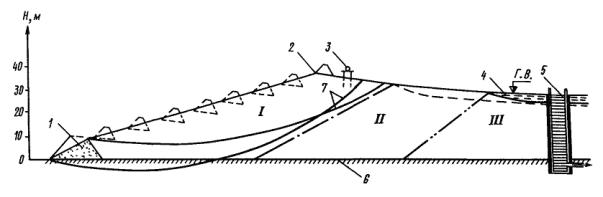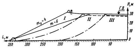 требованиям СНиП II-53-73 к устойчивости откосов гидроотвала II класса. Б. Оценка устойчивости упорной призмы гидроотвала под давлением глинистых
