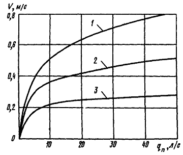 рисунке. Удельный фильтрационный расход q и глубину