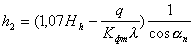 подбором по двум уравнениям: где Kфт - коэффициент фильтрации грунтов, слагающих упорную призму; l, r1, r2, i, m - расчетные коэффициенты; mп - заложение расчетной поверхности промежуточной зоны; aп - расчетный угол наклона; l1, l2, Hh, h2 - параметры, которые