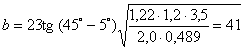 Подставив в формулу значения H = 23 м, заложения откоса m0 = 3,5(ctga), глубины прудка-отстойника 0,2-0,4 м, g1 = 1,2 т/м3, g = 2,0 т/м3, gц.з = 10°, gу.п = 26°, получим