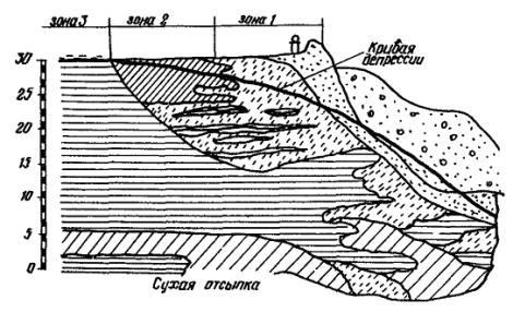 призме. Центральная зона - область осаждения под водой пылевато-глинистых частиц. Размеры