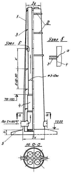 сплошная металлическая площадка; 4 - металлический ствол-газоход (cамонесущий);