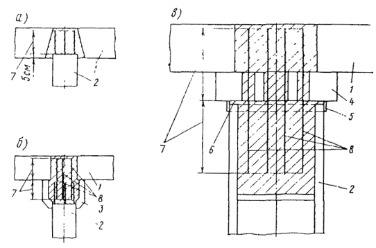 = - 23,47 - 27,56 = - 51,03 кгс/см2 < 105 кгс/см2 = sг.p = 4,09 < 20 кгс/см2 = RpII - условие выполнено, трещиностойкость наклонного сечения обеспечена. 7. ОПРЕДЕЛЕНИЕ ВЕЛИЧИНЫ ПРЕДВАРИТЕЛЬНОГО НАТЯЖЕНИЯ АНКЕРОВ Величина предварительного натяжения анкеров определяется по наименьшему значению, полученному из двух условий:
