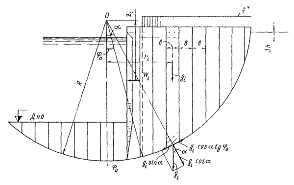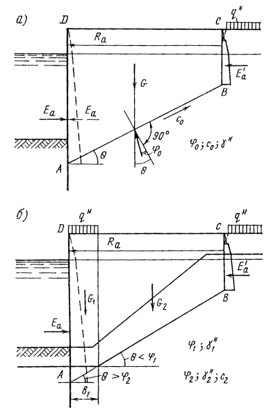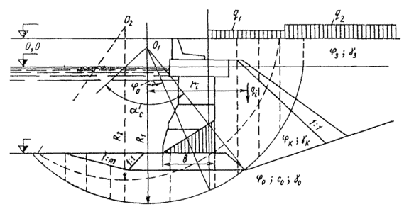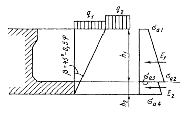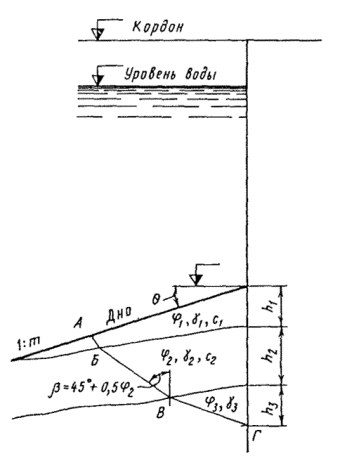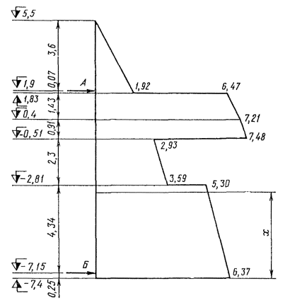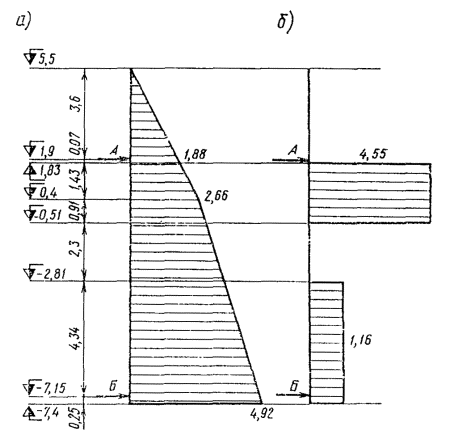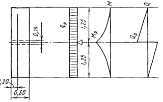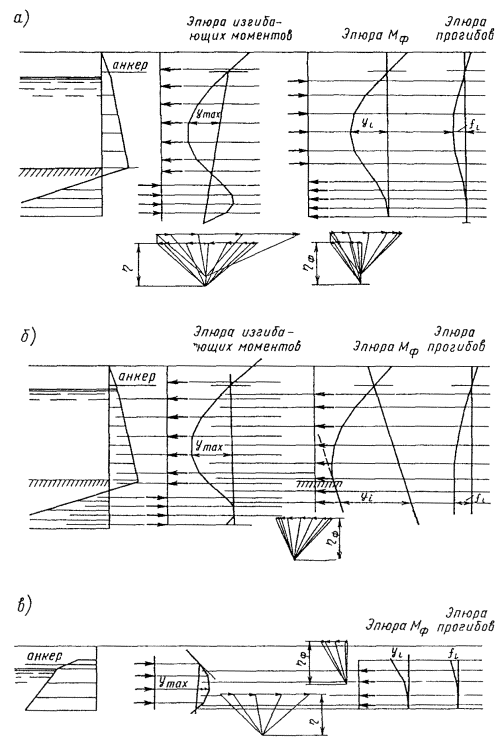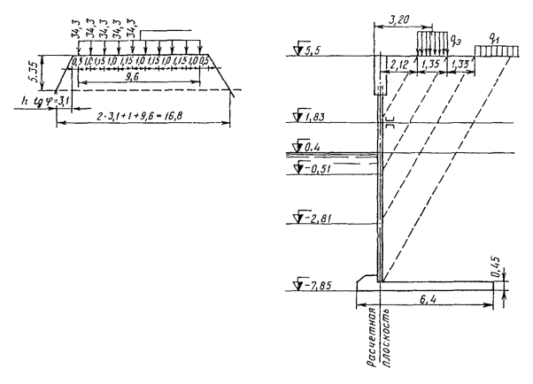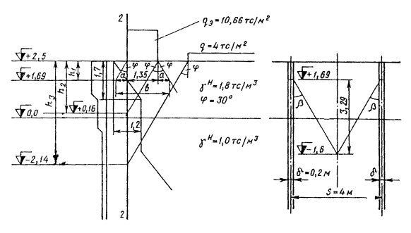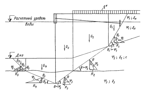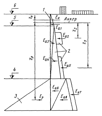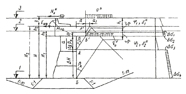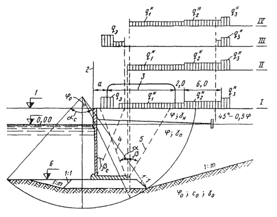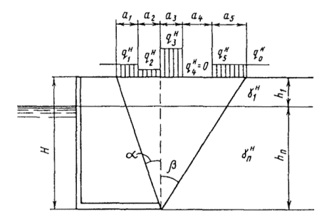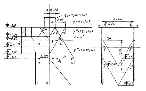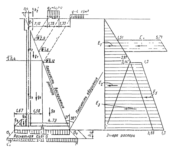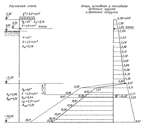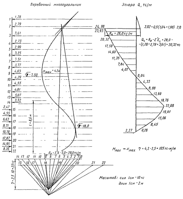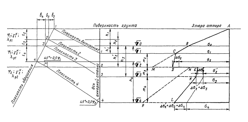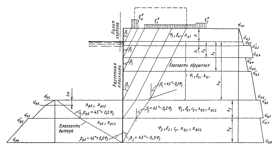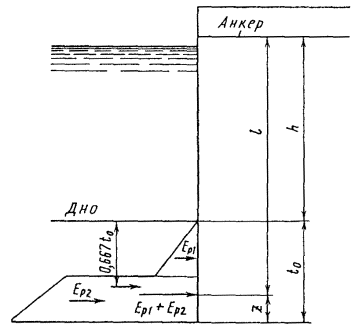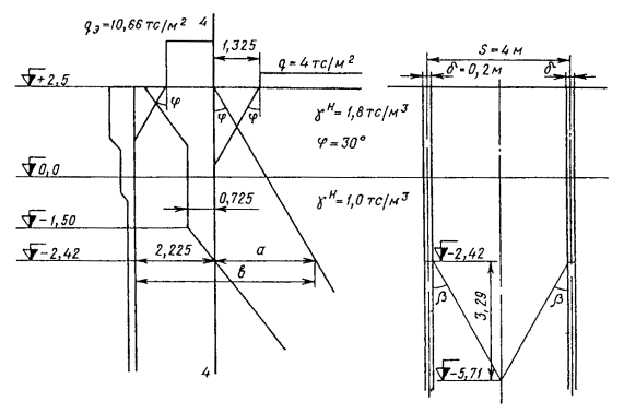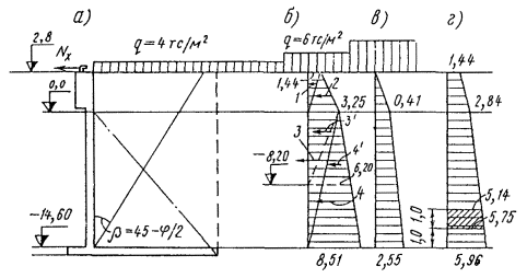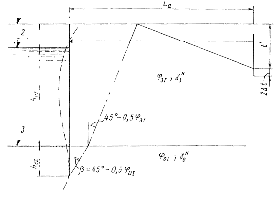 Рис. 5. Графоаналитический расчет лицевой стенки больверка по второй группе предельных состояний