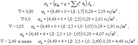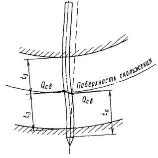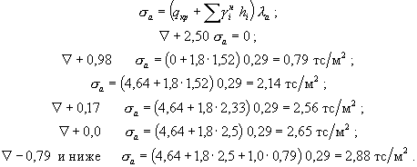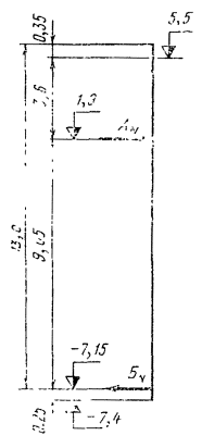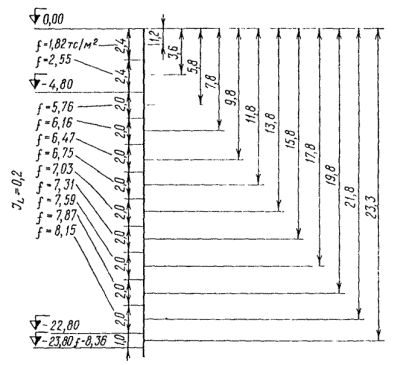 Рис. 8. Расчетная схема для определения несущей способности сваи, работающей на выдергивание. Принимаем глубину погружения на Ñ - 22,8 м: