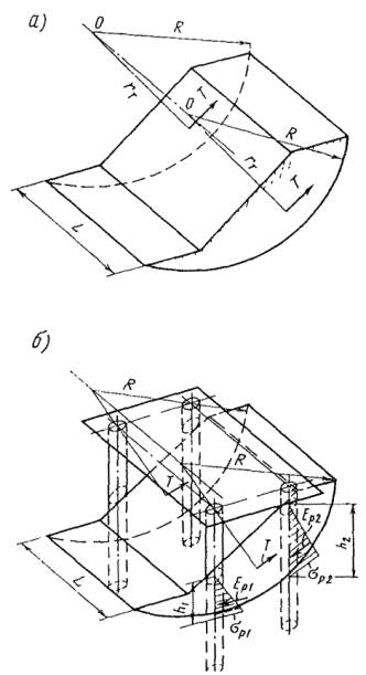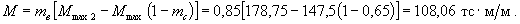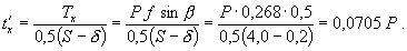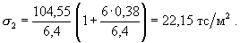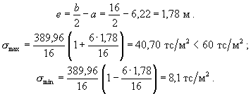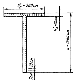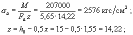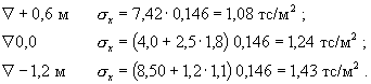 Изгибающий момент от сил трения Мт = 12,82 · 0,6 = 7,69 тс·м. Продольная сила в сечении на Ñ - 7,0 м NII = 17,44 + 6,28 + 12,82 = 36,54 тс. Изгибающий момент с учетом влияния продольных сил MII = 151,40 - 4,25 + 7,69 = 154,84 тс·м. Эксцентриситет продольной силы Расчет по образованию трещин, нормальных к продольной оси элемента, производится из условия Mв £ Мт, где Мв = 154,84 тс·м - момент внешних сил относительно оси, проходящей через центр кольцевого сечения; Мт - момент, воспринимаемый сечением, нормальным к