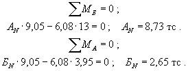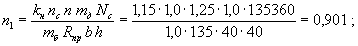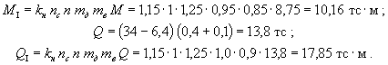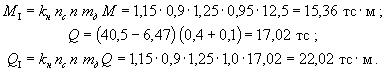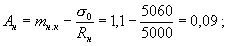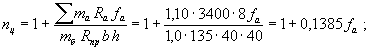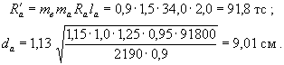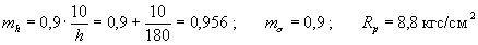 где kн = 1,15; nc = 0,95; mд = 0,95 - по п. 13.16 (8.8) и табл. 15 (5), поз. 1 настоящего Руководства для III класса капитальности, строительный случай, работа на изгиб, в сечении 8 арматурных стержней (меньше 10); n = l,0 - по п. 4.7 СНиП II-17-77;