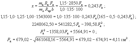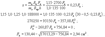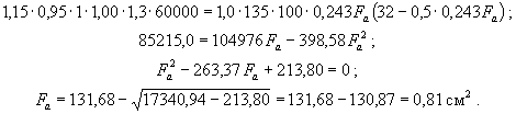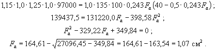 1,15 · 0,95 · 1,00 · 0,95 · 941000 = 1,0 · 135 · 40 · 0,693Fa (29 - 0,5 · 0,693Fa);