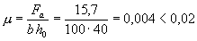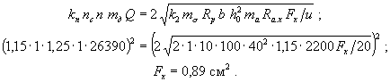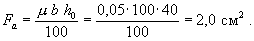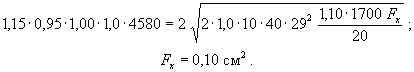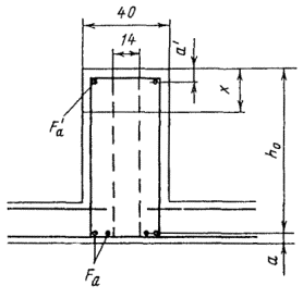 По конструктивным требованиям принимаем Fx = 2 Æ 6 = 0,57 см2. Проверяем условие 1,1 · 1700 · 0,57/20 ³ 1 · 10 · 40/2; 48,45 > 200 - условие не выполнено, количество арматуры Fx определяем по формуле