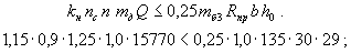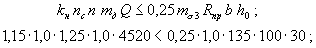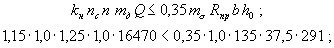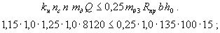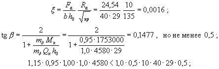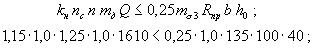 где mд = 1,0 - по табл. 15 (5), поз. 2 настоящего Руководства. 1,15 · 0,95 · 1,00 · 1,0 · 4580 < 0,25 · 1,0 · 135 · 40 · 29; 5003,65 < 39150 кгс - условие выполнено. Поперечная арматура ставится конструктивно при выполнении условия