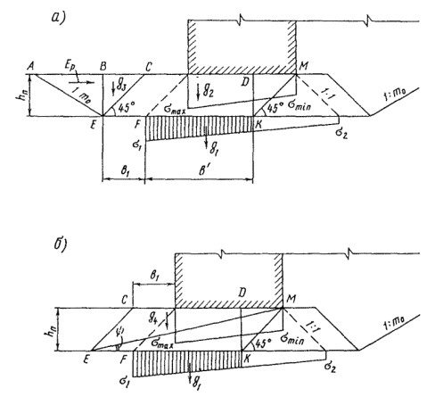 соответствии с подстилающими слой грунтами, если последние более плотные, чем