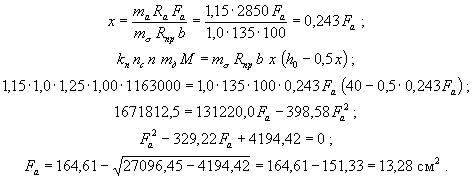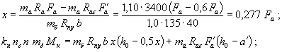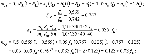 использовании коэффициента условий работы бетона mб1 = 1. Проверяем прочность сечения из условия при x > xR: