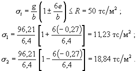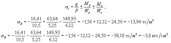 сжимающую нагрузку от продольной силы, производится по формулам внецентренного сжатия
