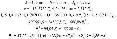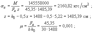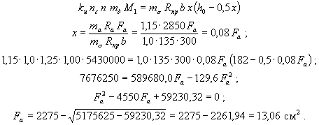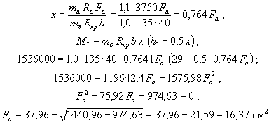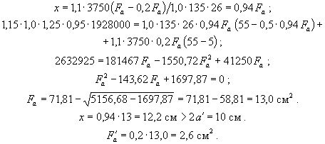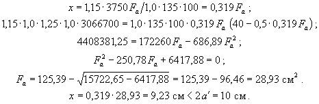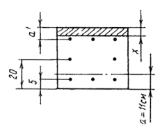 - a¢ = 29 - 5 = 24 см; 26,16 < 0,24 см. При несоблюдении условия площадь сечения растянутой арматуры определяется по формуле