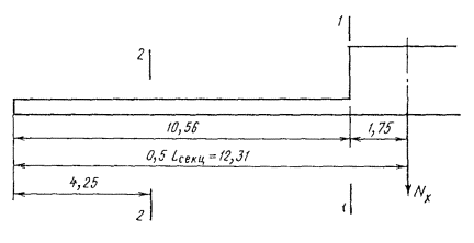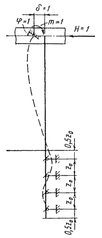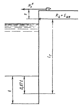или где h = 12,0 м - расстояние от линии анкера до дна; Еc = Eб = 3600000 тс/м2 - модуль упругости бетона марки М500; Ic = 0,154 м4 - момент инерции сечения сваи-оболочки (см. разд. 1 настоящего расчета);