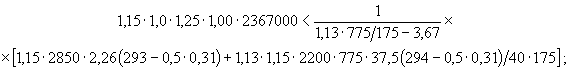 1,15 · 0,95 · 1,00 · 0,95 · 1753000 = 1,0 · 135 · 40 · 0,693Fa (29 - 0,5 · 0,693Fa);