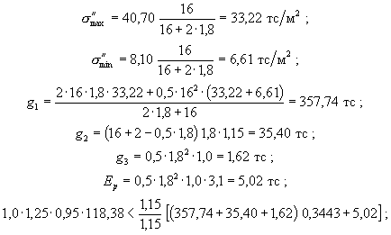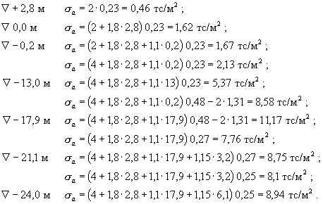 129,76 < 124,96 тс - условие не выполнено. Увеличиваем глубину погружения на 1 м до Ñ - 23,8 м