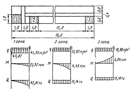 Принимаем: Fa = 5 Æ 12 = 5,65 см2; x = 0,989 · 5,03 = 4,97 см < 2a¢ = 10 см, т.е. условие расчета выбрано правильно. Подъем сваи во время монтажа производим за одну точку при достижении бетоном 100 %-ной прочности. Расчетная схема представлена на рис. 12. Момент и поперечная сила на консоли при kд = 1,5: