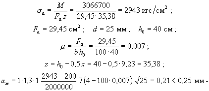 В случае, если nт < 1,5 или Следовательно, в данном расчете kт = 1. Мт = (282493 · 34,48 + 344345 · 20) = 16627259 кгс·см; 15484000 < 16627259 кгс·см - условие выполнено, трещины в растянутой зоне не раскрываются. Расчет по образованию трещин,