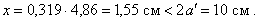 x = 0,693 · 23,19 = 16,07 см < 2a¢ = 10 см - условие не выполнено. Расчет сечения на прочность