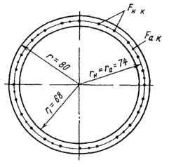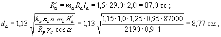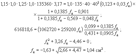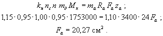 fп.н = fa - площадь одного промежуточного стержня; pн = 1 - число промежуточных стержней у грани;