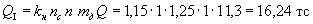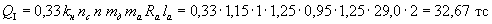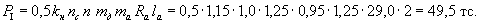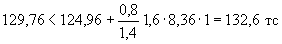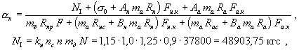 где kн, nc, n - то же, что в разд. 2 настоящего расчета; mд = 1,0 - растянутый железобетонный элемент, армированный 8-ю стержнями < 10 шт.; ma = 1,10 - число рабочих стержней в поперечном сечении 8 шт. < 10; Np = 103810 кгс - из статического расчета козловой опоры. 1,15 · 1,0 · 1,25 · 1,0 · 103810 =