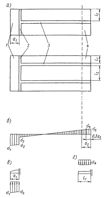 под основаниями которых постели из камня выступают на 2 м и более от линии